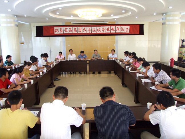 724,皖垦食品集团召开大专院校毕业生座谈会,食品集团董事长、总经理、党委书记李家堂与2006年以来到皖垦食品集团工作的20多名高校毕业生亲切座谈,深入交流思想感情,共谋集团发展大计。食品集团监事会主席、党委副书记张建民,以及董事会秘书、集团办公室、人力资源部负责同志参加座谈,张建民副书记主持座谈会。