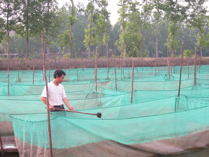 流转塘口,及时“腾笼换鸟”,引进场外小能人先示范。农场抓住农业改革机遇,将闲置塘口面积集中起来,向场外能人发包,去年建立100亩网箱养鳝示范片。今年顺应安徽农垦发展高效农业的实践活动,以黄鳝为主打品种推广高效水产养殖,一面继续引进周边乡村能人进场入塘,一面引导本场农工积极跟进。望江县赛口镇金堤村专业户汪江生今年把村里20多个村民带到农场水产养殖场,集体承包了300多亩塘口,发展网箱养鳝。农场职工马自会2007年开始网箱养鳝,靠自己摸索趟出了致富路。马自会算了一笔账,网箱养鳝,黄鳝增重快,翻倍率高,一般每亩纯收益在8000-10000万元之间,是棉花亩收益的10倍以上。农场今年网箱养鳝面积已达1469亩,预计年产值达3000万元,养殖户纯收入总额可达1500万元。
