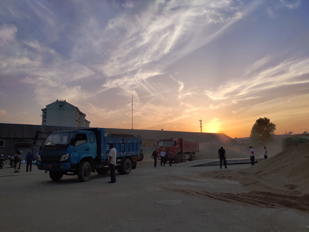 午收的主打色是金色,成群结队的大型收割机从清晨工作到夕阳西下,收割的小麦直接运往农场各个农服收购站。运粮车从上称、检测、卸粮到出站不过十多分钟的时间,迅速快捷而有序。(华阳河农场公司 包丹凤)