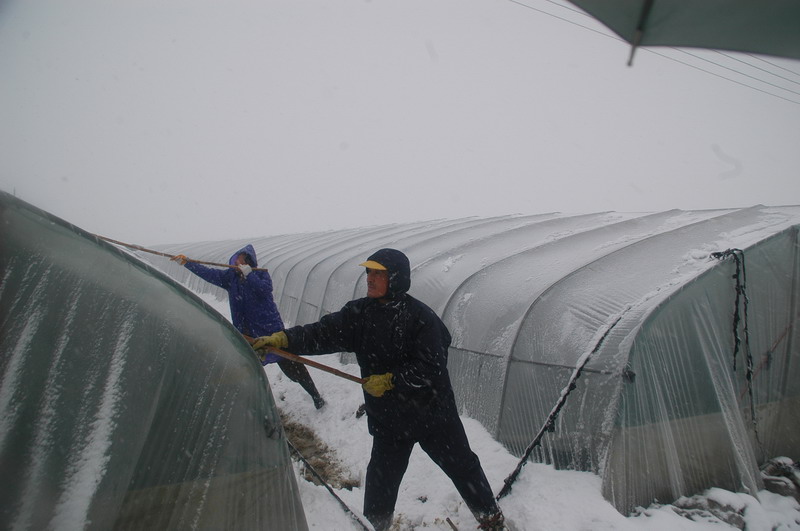 暴雪不仅给居民生活带来不便,也造成目前正在紧锣密鼓施工的廉租房建设暂时停工休整,更让全场1200余亩大棚草莓种植户经受了严峻的考验,他们不畏暴雪严寒,日夜奋战在生产一线,去除大棚积雪,防止大棚压塌和草莓冻害发生。