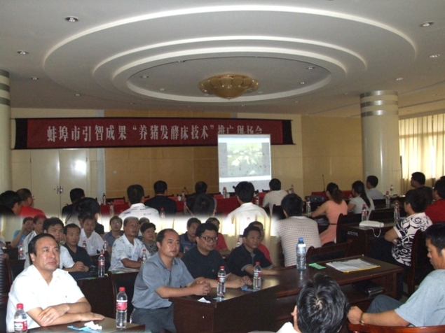 发酵床也叫生态床,利用全新的自然农业理念,结合现代微生物发酵处理技术提出的一种环保、安全、有效的生态养猪法。实现养猪无排放、无污染、无臭气、彻底解决规模养猪场的环境污染问题,它是集养猪学、营养学、环境卫生学、生物学、土壤肥料学于一体,遵循低成本、高产出、无污染的原则建立起的一套良性循环的生态养猪体系。它是工厂规模化养猪发展到一定阶段而形成的又一亮点,是养猪业安徽农垦集团的新模式。该技术在蚌埠市养殖业中积累了宝贵的成功经验,为把此项技术深入推广,带动更多的养殖户增收致富,蚌埠市特举办了此次现场推广会。