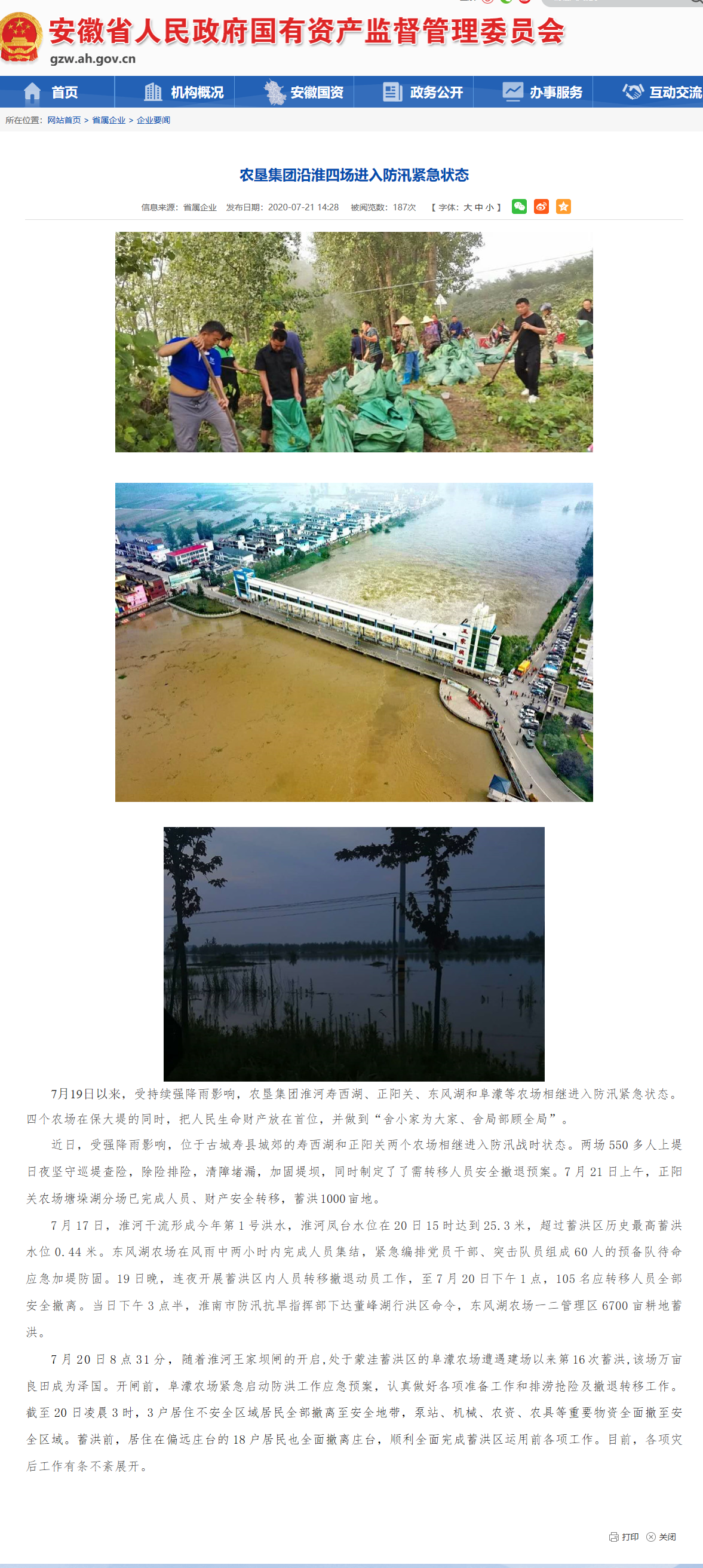 安徽农垦集团:誓保江河安澜和谷物丰稔——安徽农垦防汛抗洪保生产纪实